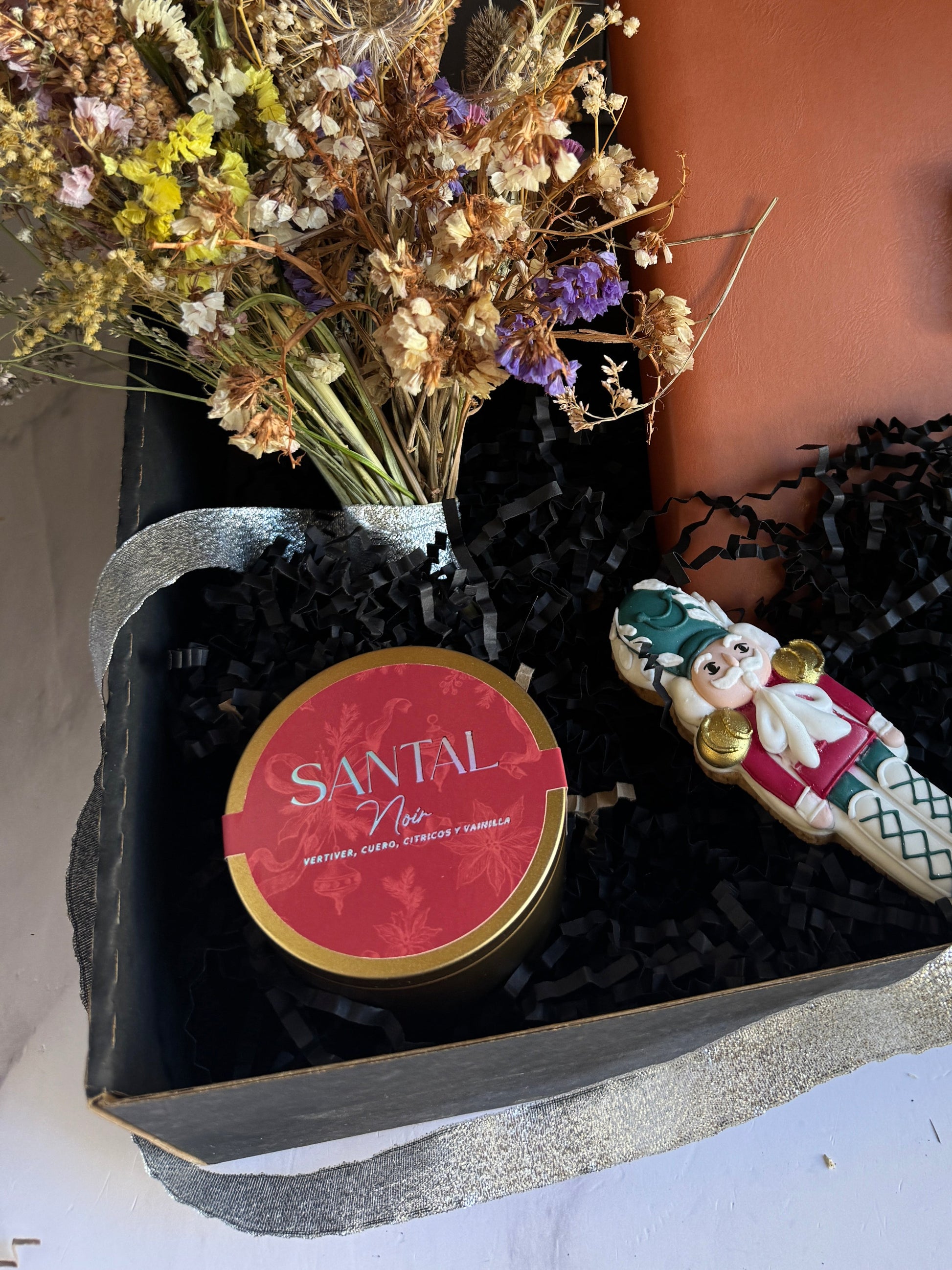 Incluye decoración, a elegir como flores secas o moño de listón de satín.