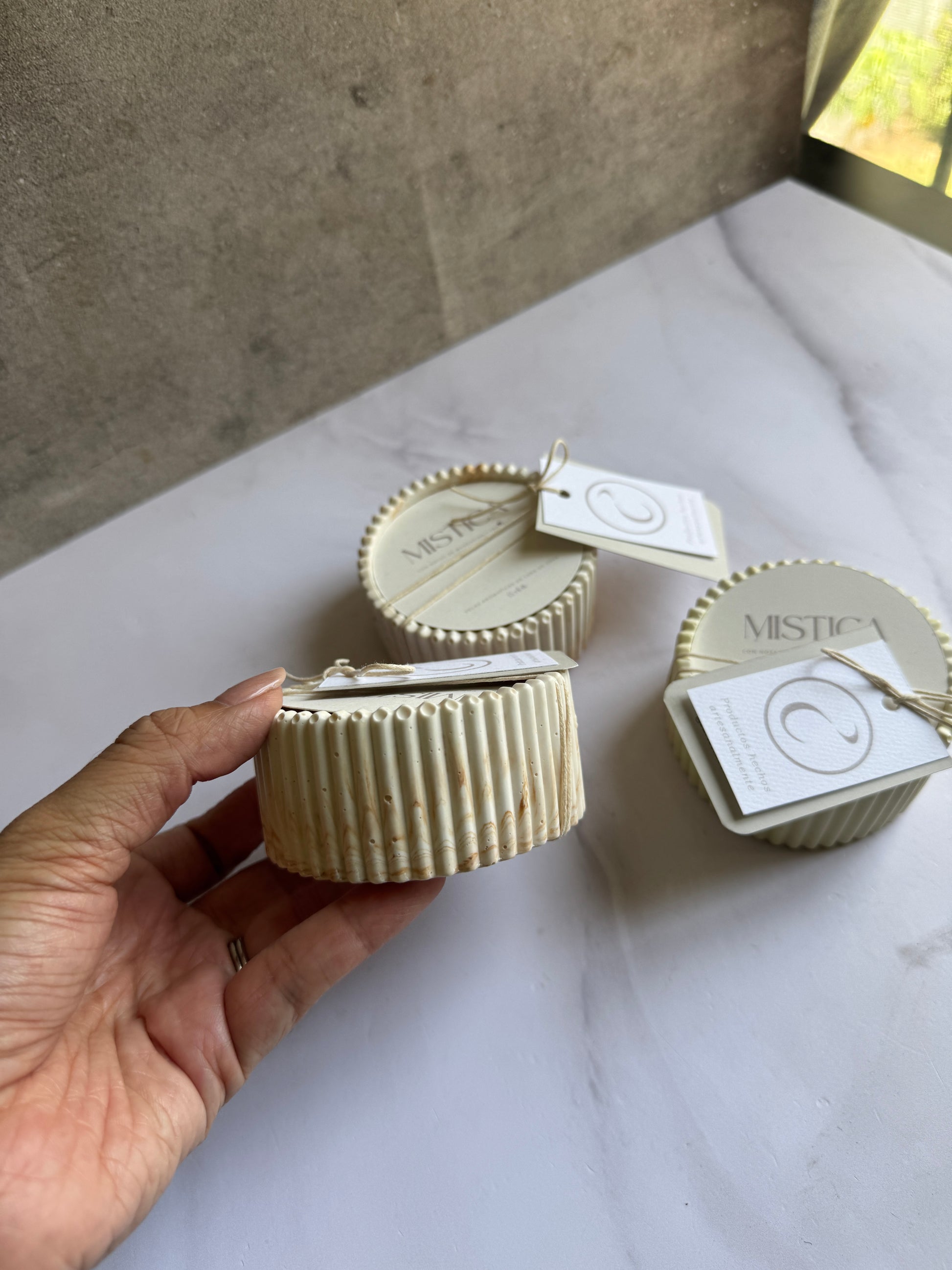 Colección PIETRA, son elaboradas desde el envase a base de resina acrílica y pigmentos, resistentes al calor, humedad y caídas.